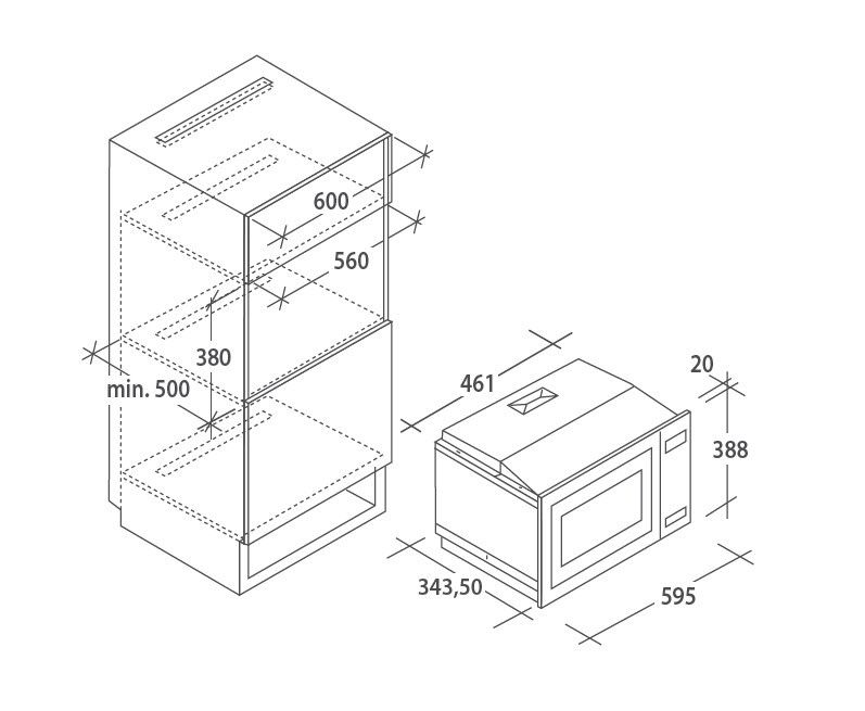 Caratteristiche principali – Connettività: solo contenuti su App hOn – Capacità 20 litri – Controllo Elettronico: Display Digits con manopola – 7 funzioni: microonde, preriscaldamento, grill, d