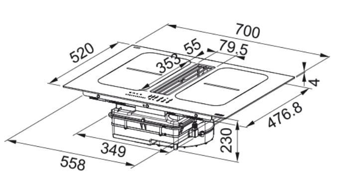 Dimensione: 700×520 Foro incasso: vedi dima pag.383 Numero zone 4 Controllo 1 sliding touch control Funzioni speciali manteni