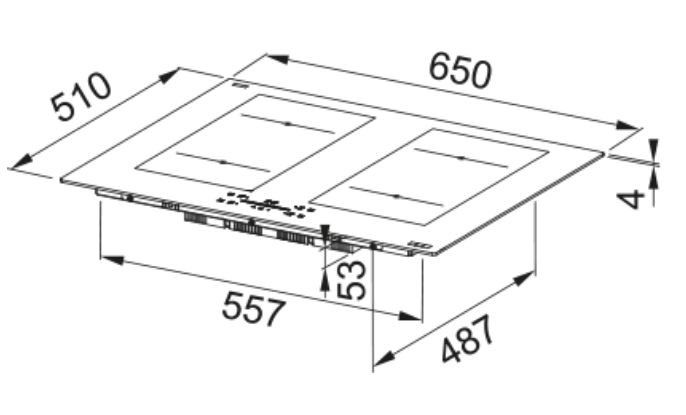Dimensioni: 650×510 Foro incasso: 560×480 Profondità cassetto 53 n. zone 4 Controllo 1 sliding touch