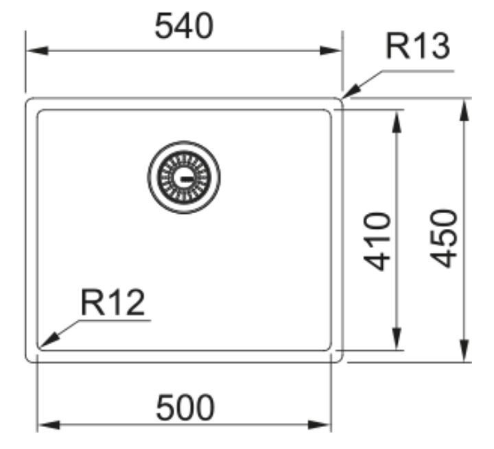 Base: 55 Dimensioni: 540×450 Foro incasso vedi libretto istruzioni Vasca: 500x410x200 mm Prodotto consigliato kit sigillante (1