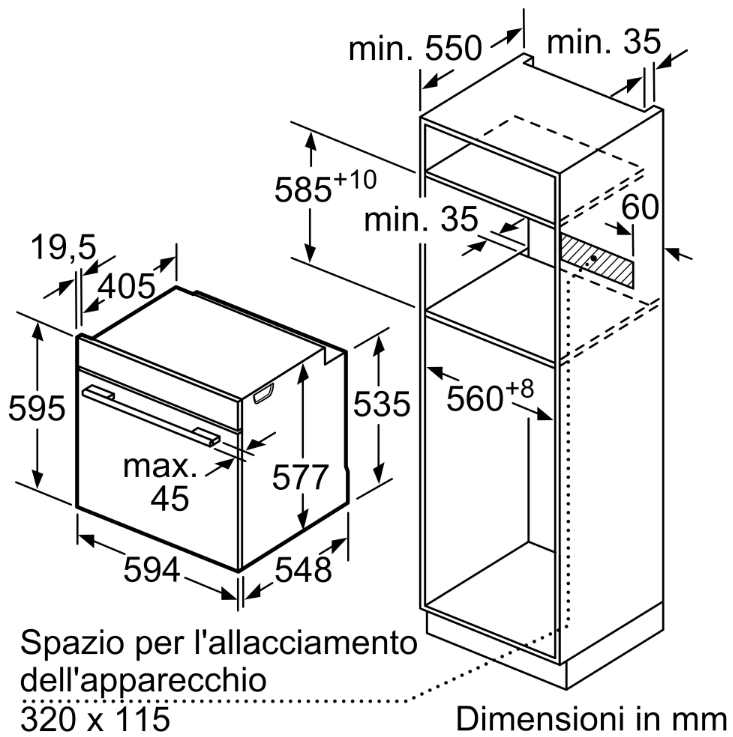 Dati tecnici Colore  Vetro Bianco + Acciaio Inox Caratteristiche Capacità 71 Lt Comandi con Display TFT da 2,8” Tecnologia Aria Calda 4D (Distribuz